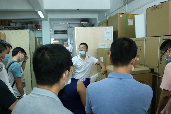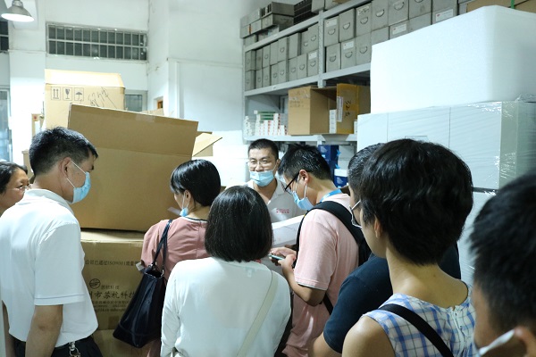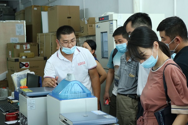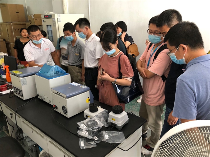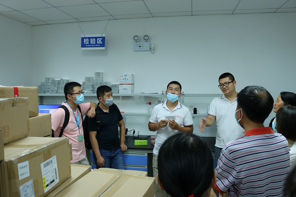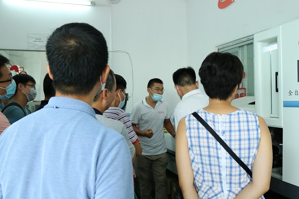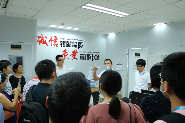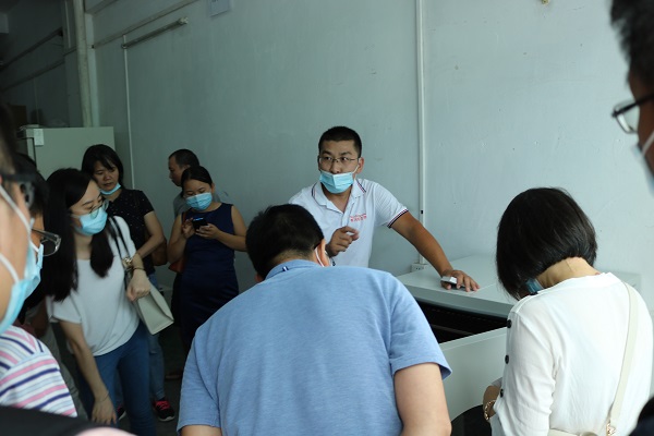 老師及學生們還對飛迪倉庫進行參觀,連移液器也不忘讓陳總展示一下!