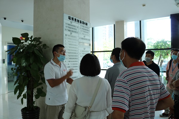 在飛迪參觀了解后,陳總帶著領導老師們去到了瑞博奧創新園,參觀了解我們兄弟公司賽百純生物。