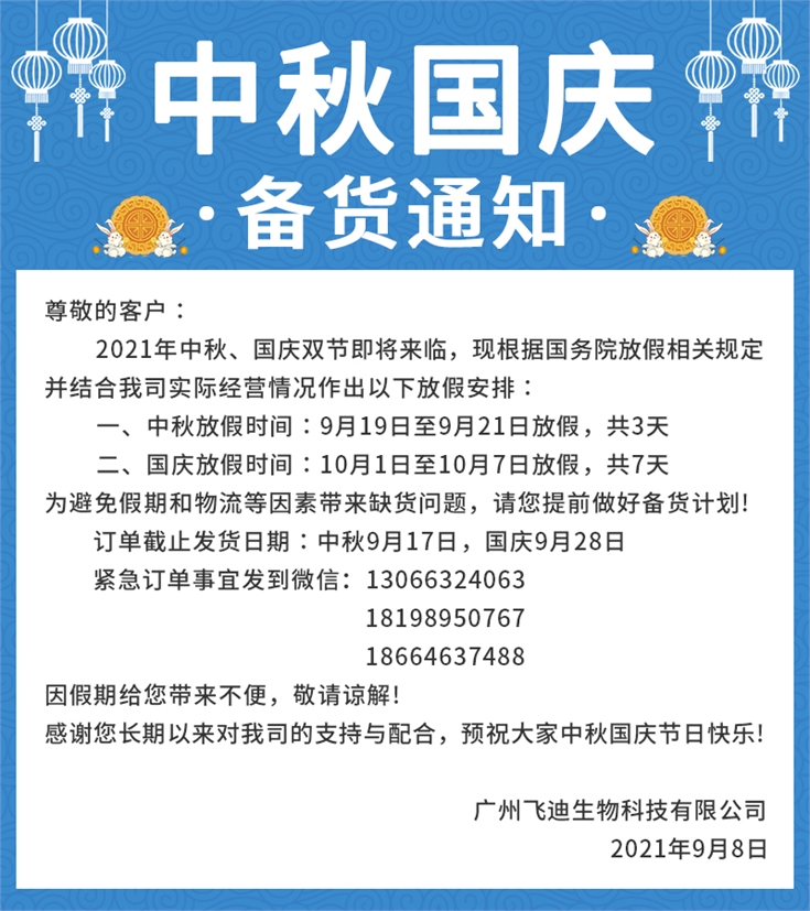 有需要的合作伙伴請(qǐng)安排好備貨訂單,感謝您對(duì)飛迪生物的支持和關(guān)注!