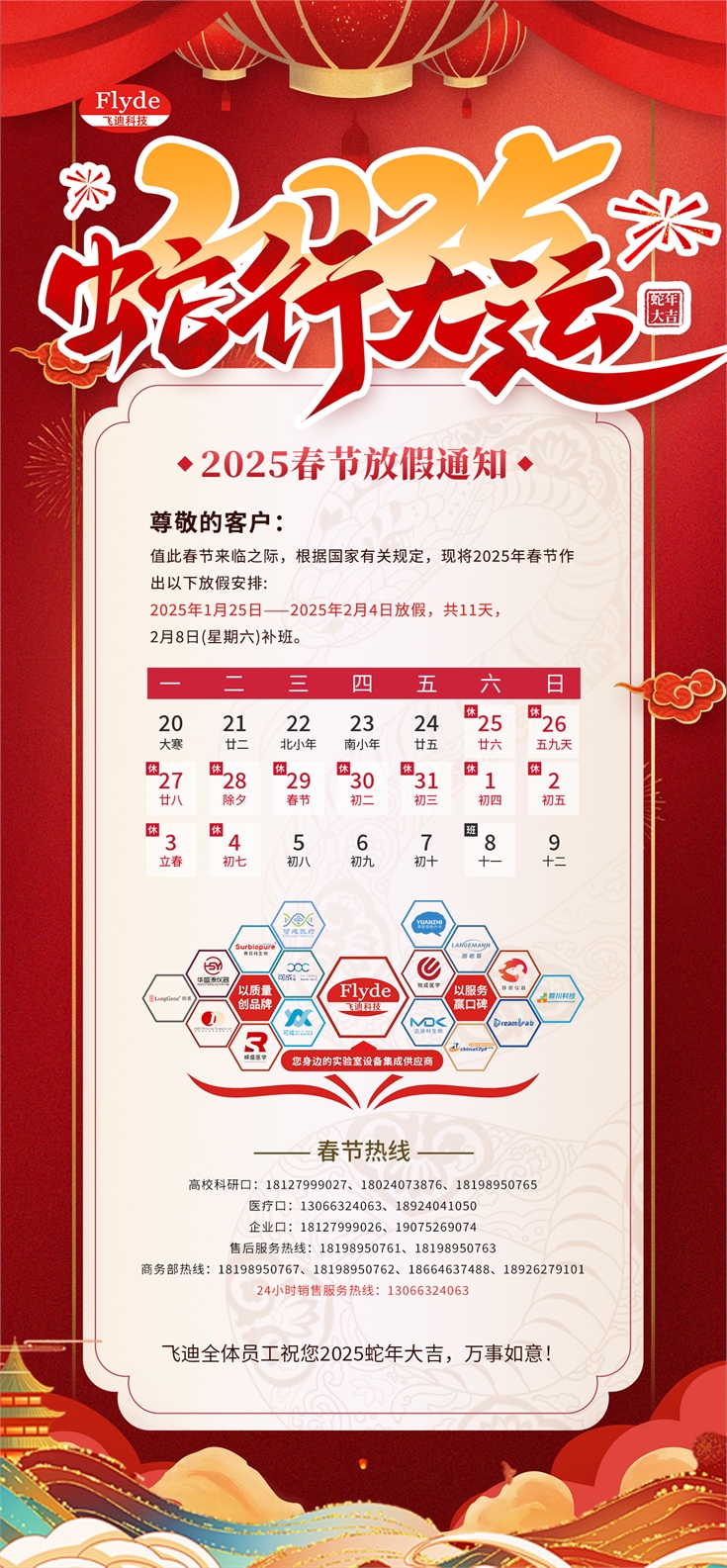 我司2025年春節放假時間為:2025年1月25日(農歷12月26日、周六)至2025年2月4日(農歷正月初七、周二),共計11天。