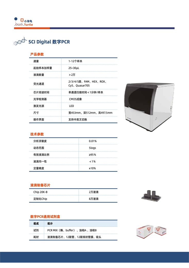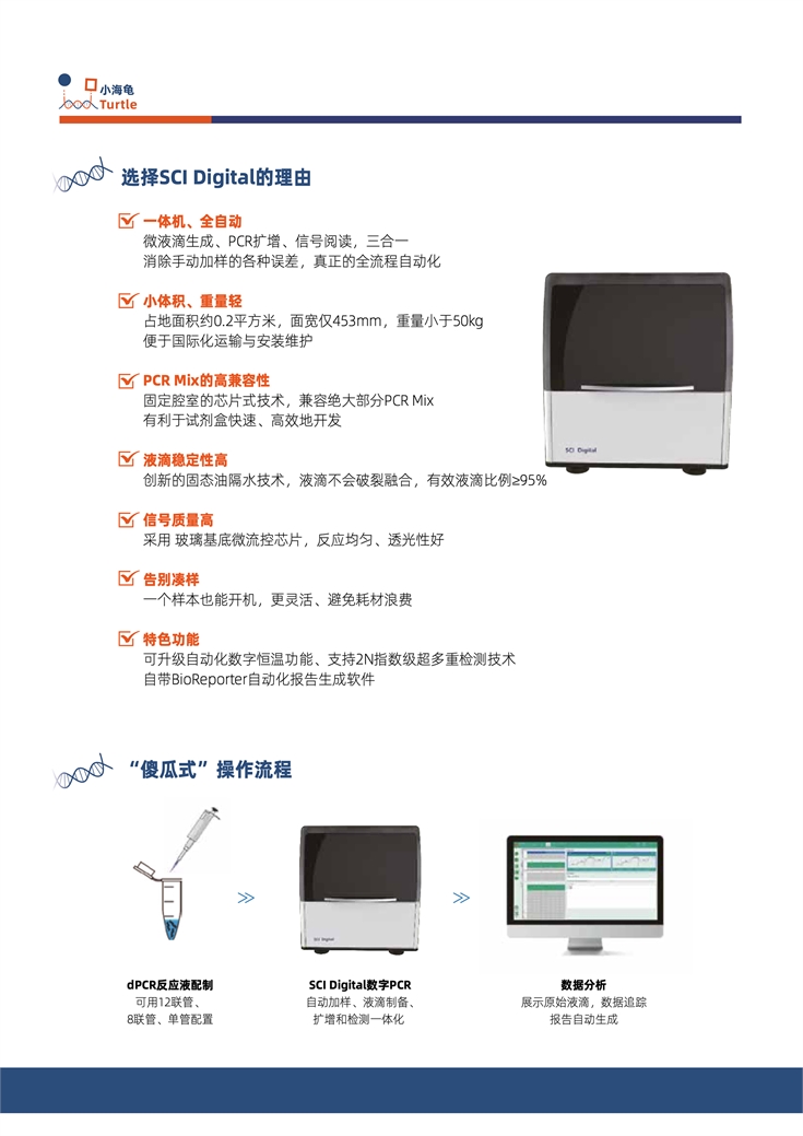 SCI Digital數字PCR?體機具備:一體機、全自動,小體積、重量輕,PCR Mix的高兼容性,液滴穩定性高,信號質量高,告別湊樣等優點。